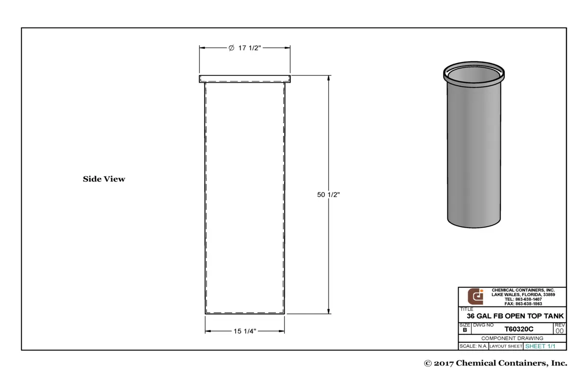 36 Gallon Polyethylene Open Top Cylindrical Tank and Cover, 15" x 48"