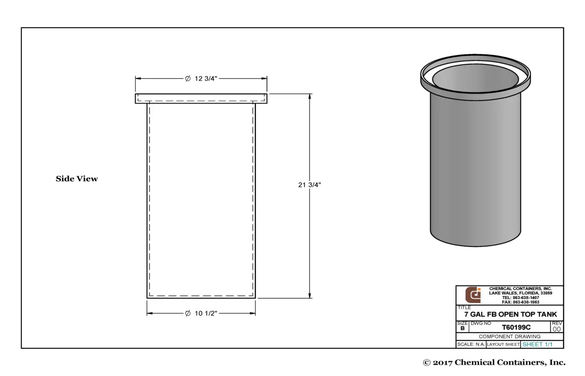7 Gallon Polyethylene Open Top Cylindrical Tank and Cover, 10" x 21"