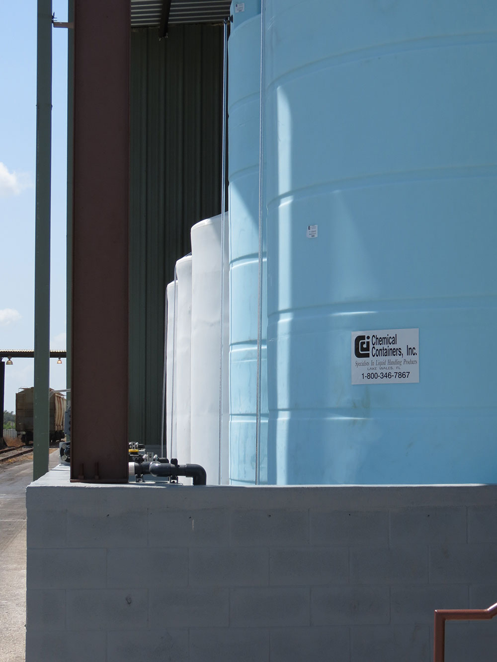 - Eight (8) Heavy duty cone bottom polyethylene tanks.