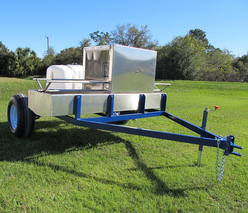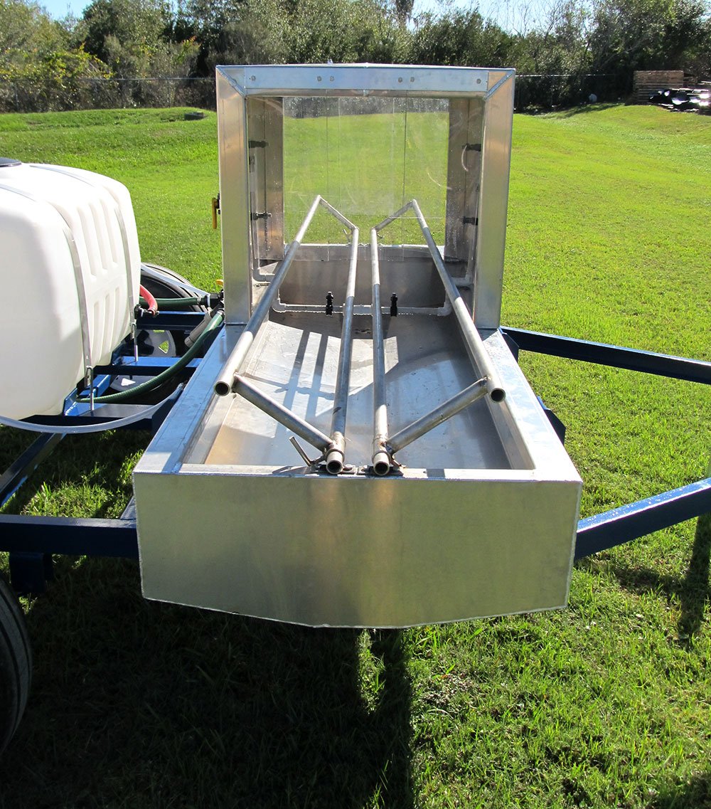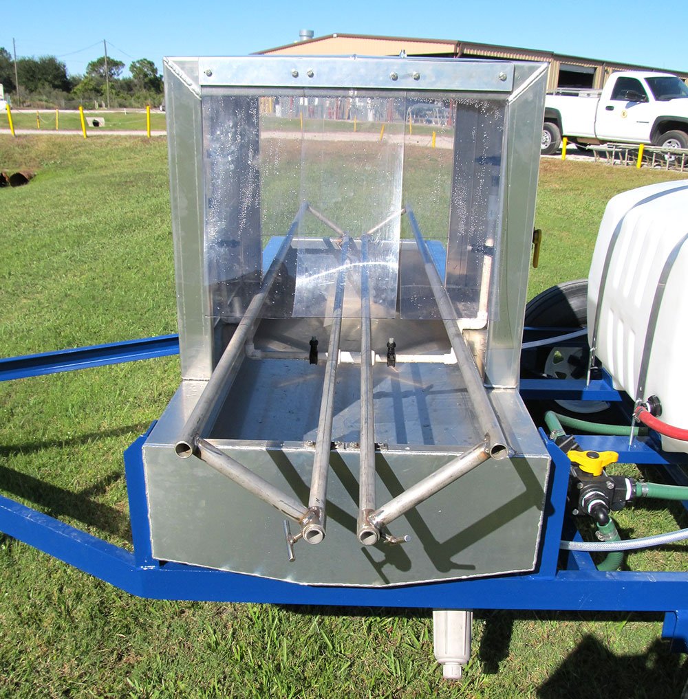 Chemical Containers designs and builds custom Picking Container Disinfectant Trailers, that allow for convenient sanitation of various size containers while in the field.