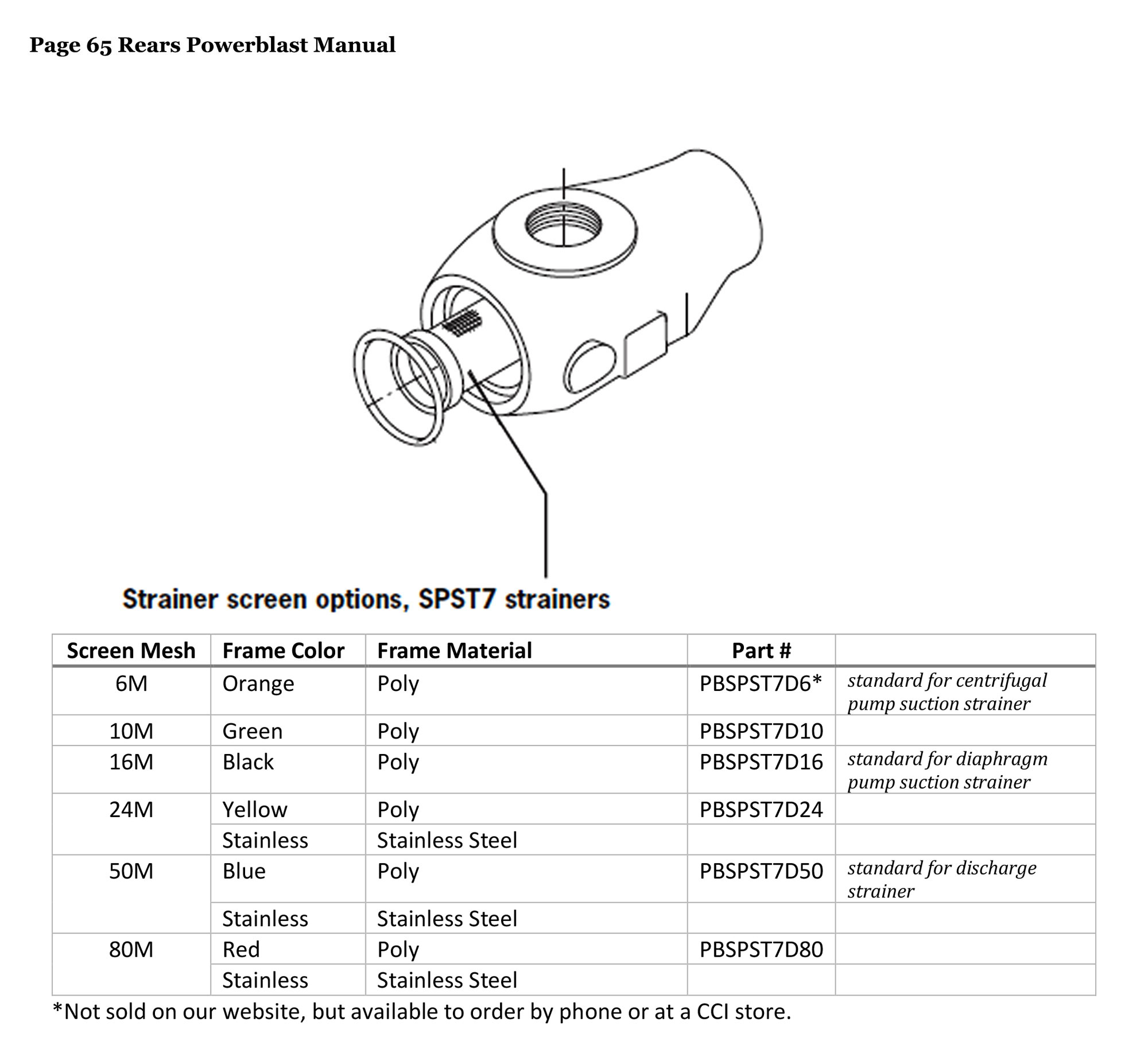 Rears Power-Blast Sprayers Strainer Screen Options with Diagram | SPST7 Strainers