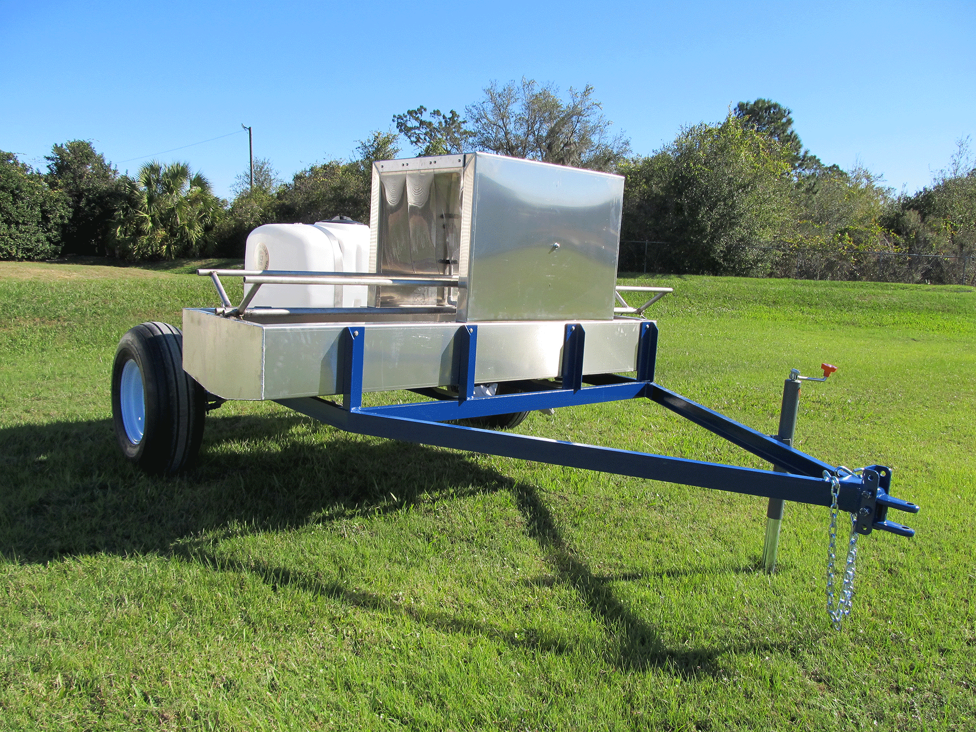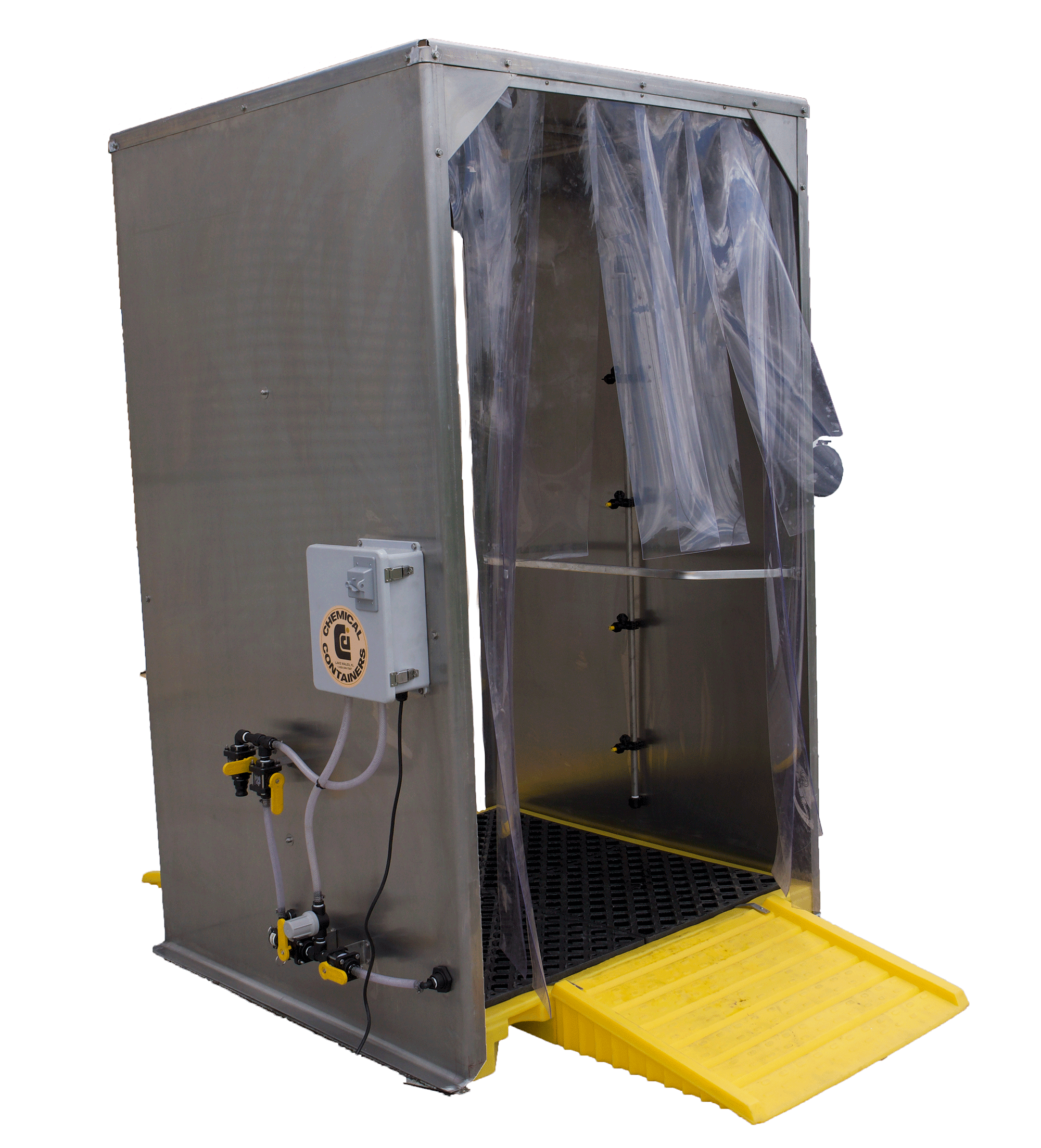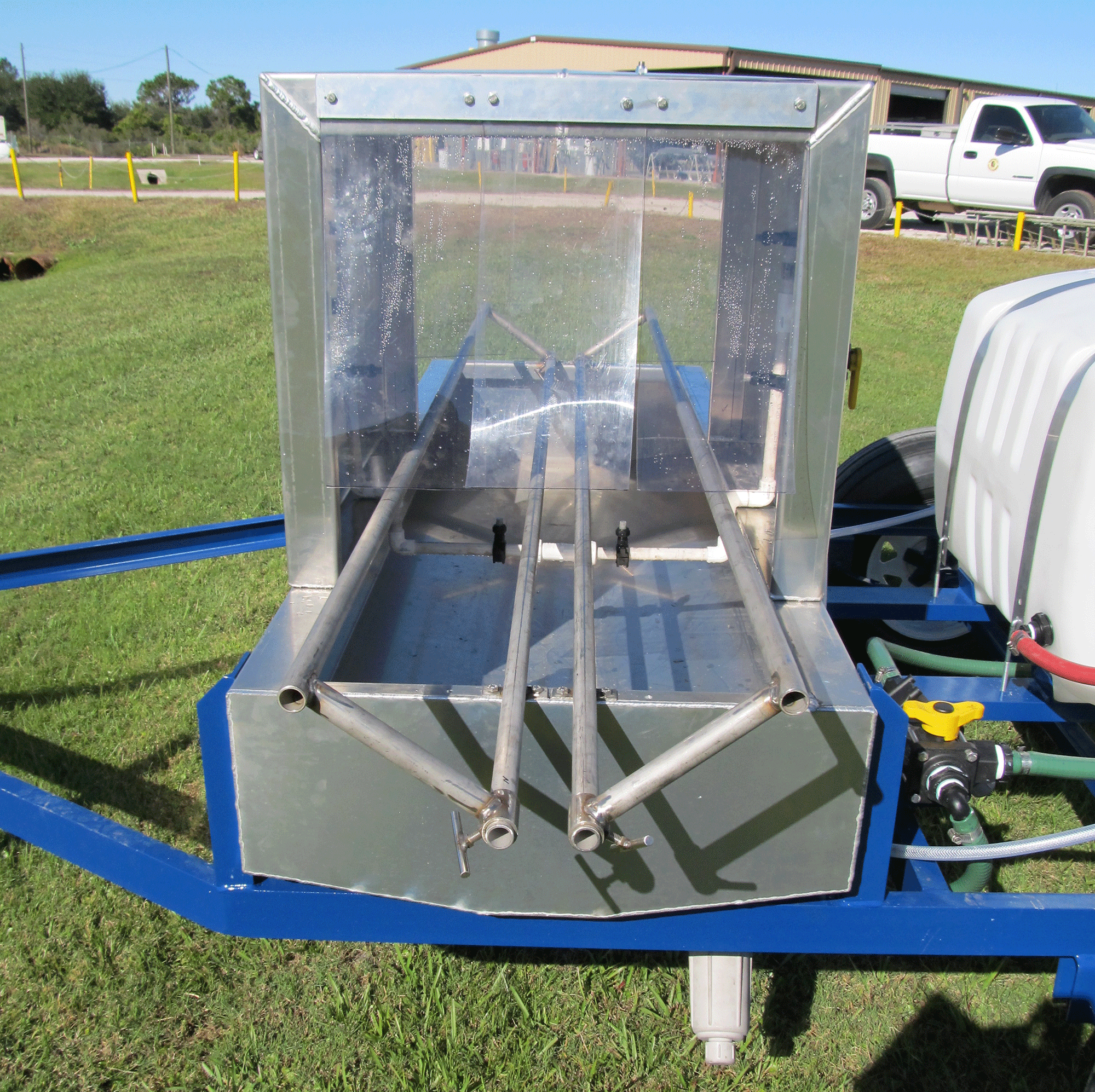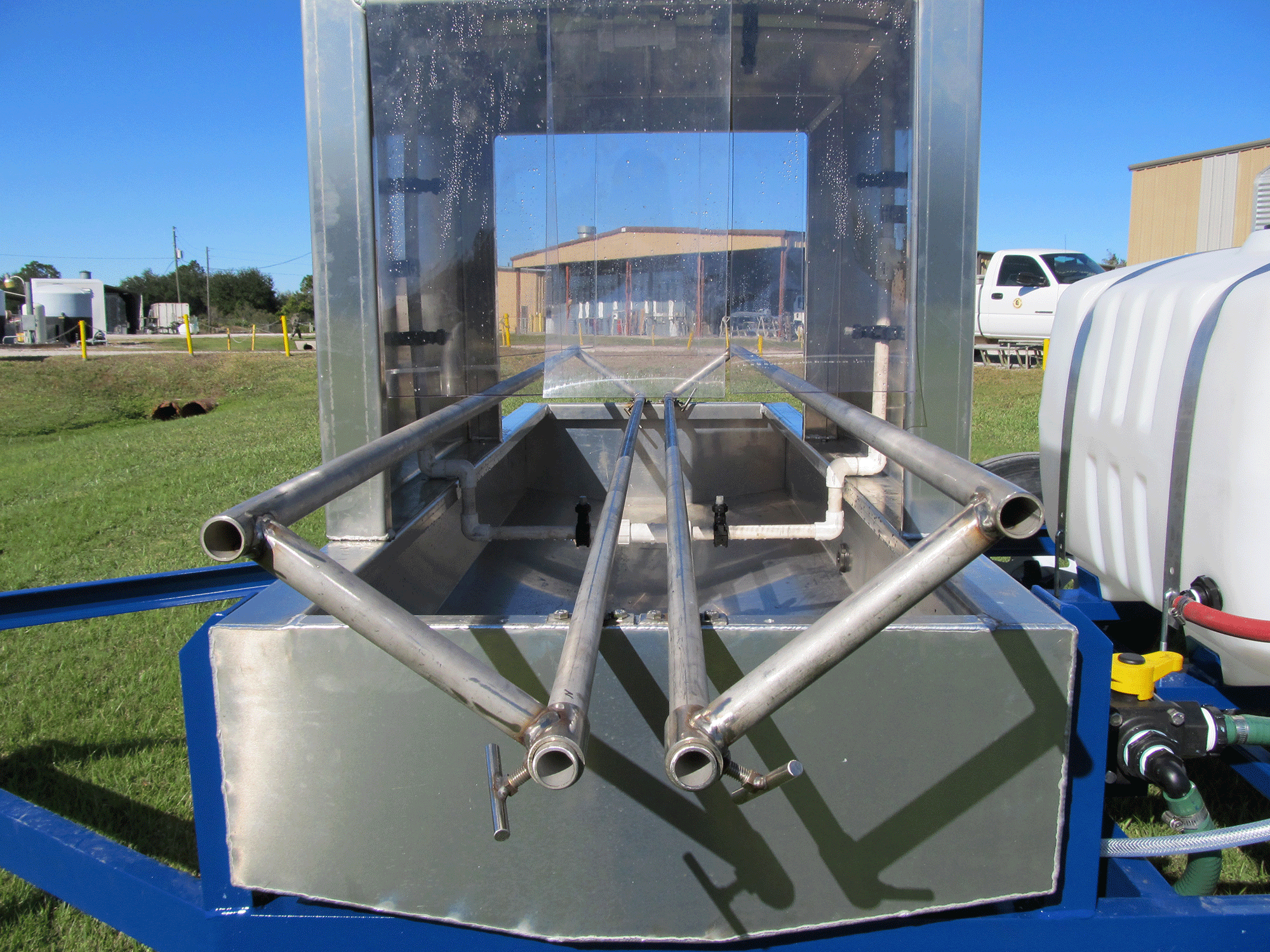 Below are examples of equipment our manufacturing facility in Lake Wales, FL can create, from Sanitation Spray Booths to Portable Container Sanitation Trailers, that are made to handle high volumes of items that require regular intense cleaning. Standard features are listed, which can be modified when you order to ensure it's tailored to best fit your needs.