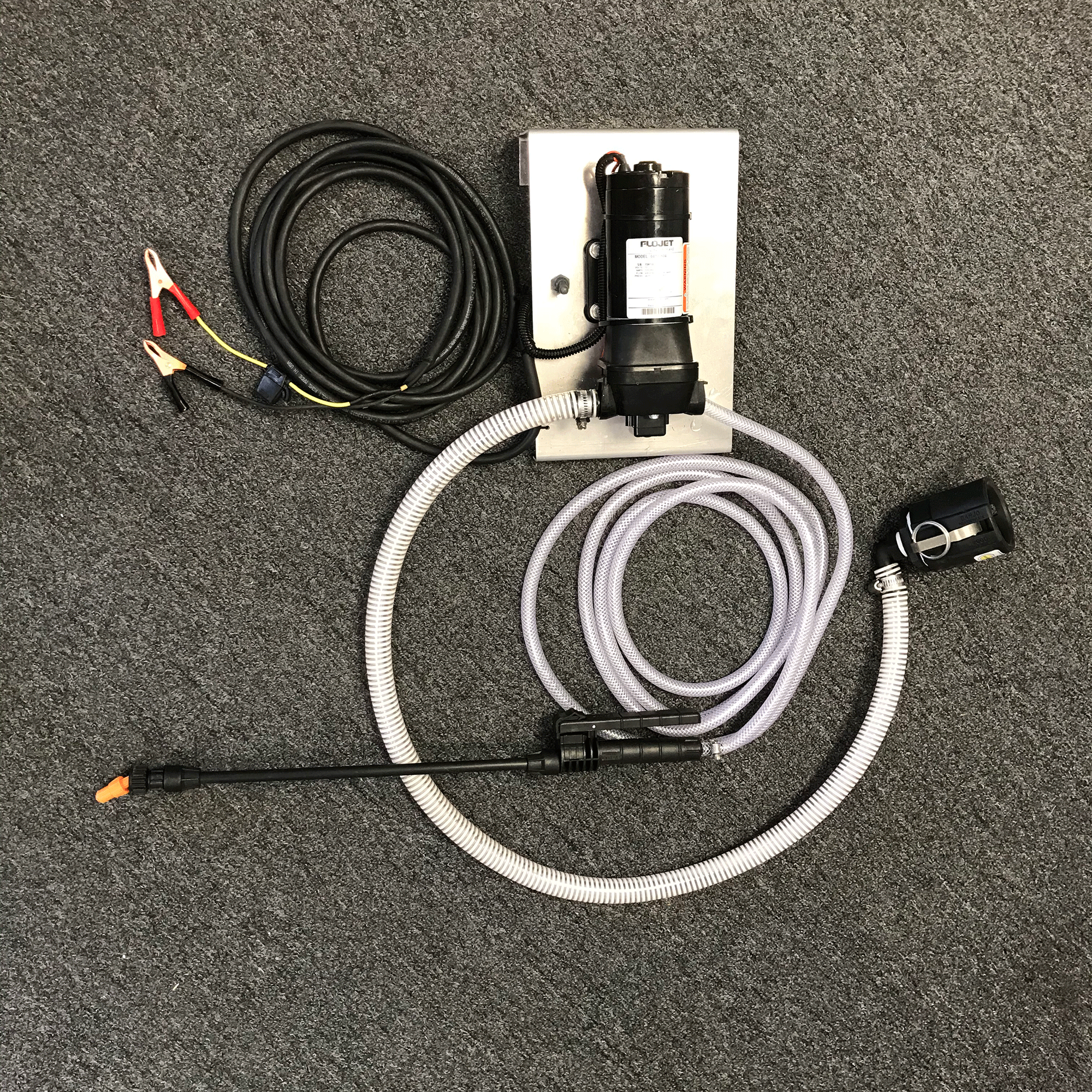 - Includes 12 Volt Pump, Poly Handgun With Adjustable Poly Tip, & Clear Braided Hose