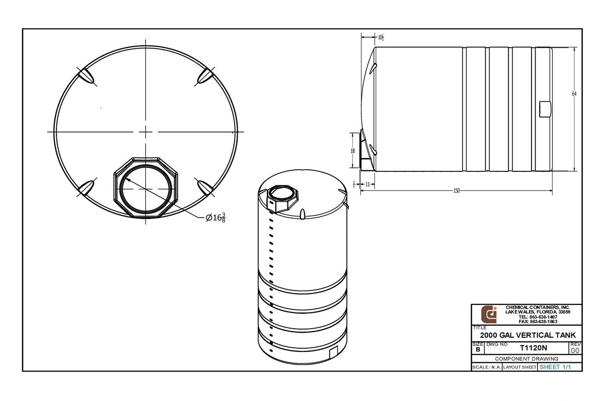 2000 Gallon Vertical Polyethylene Tank - 64" D X 152" H