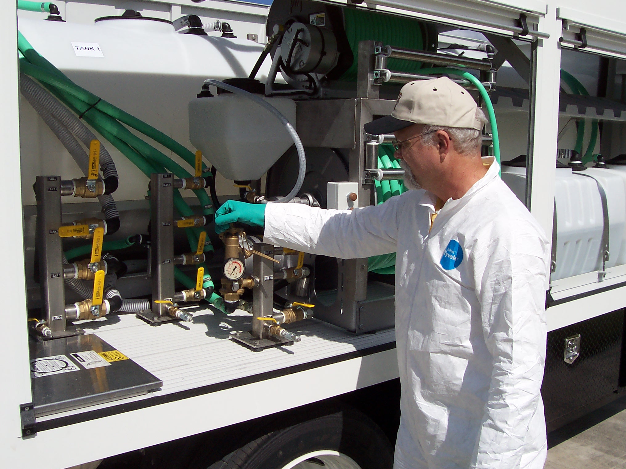Chemical Containers Inc. uses high quality polyethylene tanks for commercial spray rig applications. The tanks can hold a variety of chemicals and are very resistant to the rigors of commercial work environments. Chemical Containers spray rigs use vertical tanks, horizontal applicator tanks, PCO tanks, cone bottom tanks, total drain tanks, and a stainless steel mix hopper.